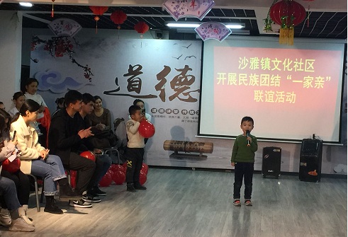 联谊活动中,五岁小朋友歌唱《五十六个民族五十六朵花》,表达了对伟大祖国的热爱之情和民族团结的珍视之情。返乡大学生男生带来了自编自演的现代舞和惊恐舞,展现了良好的精神面貌。漂亮的姑娘们激情饱满的歌唱《花木兰》、《天仙配》博得了阵阵掌声。居民返乡学生围坐在一起欣赏节目。现场充满了团结、欢乐和祥和的气氛。形式多样的文艺节目,将民族团结的理念根植在居民和学生们心中。活动结束后,社区干部为居民和返乡学生们颁发奖品。