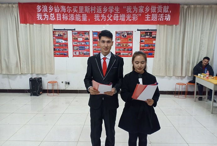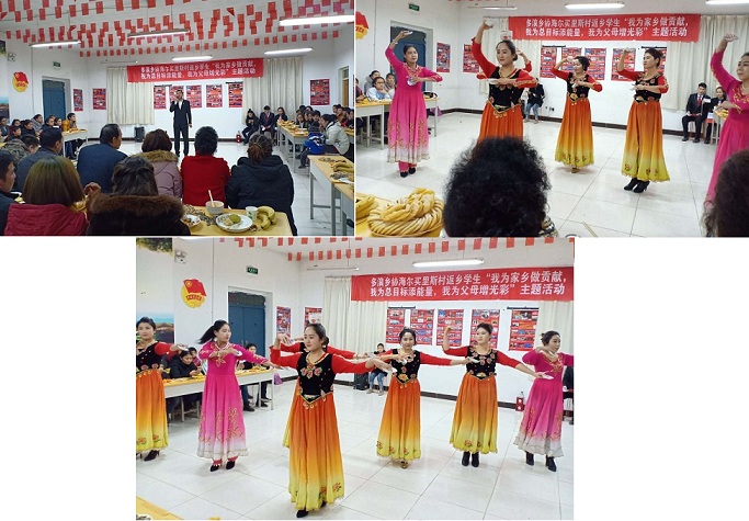 活动中,朝气蓬勃的返乡学生们给大家带来了精彩的现代舞蹈、小品、红歌,诗歌朗诵。表演内容丰富、形式多样,广大党员们也用自己的方式表达着对党和政府的热爱和祝福。就读于昌吉大学的大一学生汗克孜·孜牙吾敦说:“在党和政府的关心关怀下,像我这样贫困家庭的子女也顺利上大学,我心中无比感恩和感激。回想去年8月,我收到昌吉大学的录取通知书时我非常高兴,但是一想到我家的经济情况,我的心情顿时消沉低落,打算放弃这次机会,以后挣钱了再去考大学。但在我心灰意冷的时候,驻村工作队副队长居热艾提·麦麦提大哥了解我的情况后,帮助我解决了学费和生活费的问题,是党和政府给了我这次重获新生的机会,我一定要好好珍惜这来之不易的学习机会,好好学习。在学校,班主任了解了我的家庭情况后,并帮助我解决了书本、住宿、伙食等费用问题,老师们和同学们都特别关心我的生活状况,我处处都能感受到家的温暖,这都是党和政府对我们的关心帮助。我一定要好好珍惜这来之不易的生活,努力学习,努力成材,报答家乡,为家乡建设出一份力”。其他返乡大学生们也踊跃发言,结合自身实际谈学校生活、谈理想志愿、谈成长经历、谈家乡变化,谈文明生活。