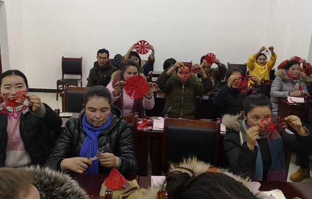 在上海读书的喀赞其村返乡大学生阿孜古丽·麦麦提说:“在上海上学的时候,在大街上经常会看到贴在橱窗上的各种剪纸图案,我的第一感觉是很不可思议,竟然可以通过小小的纸片剪出这么多形形色色美丽生动的图案,心里想着,什么时候我也会剪就好了。很有幸可以赶上本次培训,通过老师一遍遍的教,我也可以剪出图案了,虽然目前剪出的图案是最简单的“雪花”,但感觉还是很有成就感的。回去之后我会继续努力,多练习,争取剪出要多好看的图案,给家里和亲朋好友家里的窗户上都贴上好看的剪纸图案,为家里增添过年的喜气。”