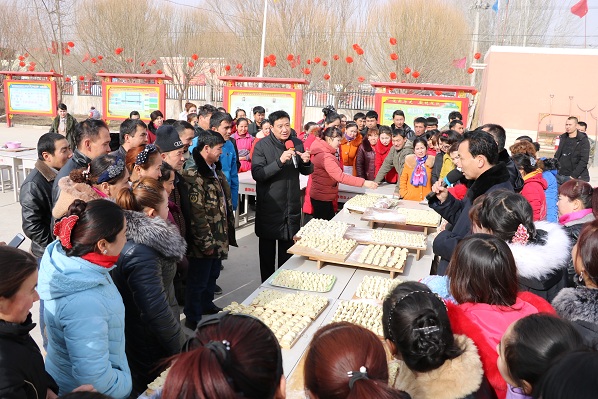 清风网讯(通讯员:自治区人民检察院 罗世山) 2月1日,自治区人民检察院驻拜城县赛里木镇拉帕村工作队组织拉帕村群众开展庆祝2019年新春主题系列文化活动正式拉开序幕。今年春节的第一场活动就是“迎新春包饺子比赛”。工作队队长马士军作了赛前致辞,介绍了中华传统佳节---春节的由来、风俗、美食文化及包饺子、吃饺子的深刻寓意,并提前给乡亲们拜年。副队长张锋友宣布了比赛规则并宣布比赛正式开式。