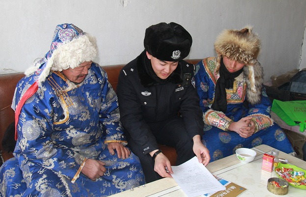 清风网讯(通讯员:赵娟)岁末年关,春节临近,因辖区铁路沿线牧民较多,为确保线路治安平稳有序,有效预防牲畜上路挡停列车行驶事故的发生,切实提高牧民的爱路护路意识,2019年2月2日,锡林浩特车站公安派出所联合锡林浩特护路办深入桑锡线沿线入户开展“爱路护路,福到万家”为主题的爱路护路安全宣传活动。