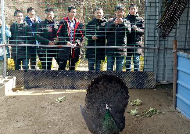 2月1日上午,班长胡梓娴自发组织19位同学走访慰问孔家坊乡福利院,开展了“学习道德模范,知晓国家福利政策,关爱五保老人”的暖冬行动。2月1日下午,同学们又兴致盎然地来到英山县西河十八湾之恋乡湾的利生园生态农庄,体验农耕文化,感受建国70周年的沧桑巨变。同学们先后参观了“有机食材体验园、动物观赏园、植物景观园、能工巧匠作坊园、民俗体验展示园”五大特色园区。在水上生态餐厅,同学们驻足水上廊道,观锦鲤戏水,感受归园田居般恬静的农家生活;在孔雀园,同学们静候孔雀开屏观难得一见的幸运;在十大名花园及多肉植物馆,同学们观赏大自然的多彩和多姿;在九铺十三坊,同学们自己动手制作一个专属的陶瓷制品或一幅活字印刷品,感受老祖宗千年智慧的神奇;在大别山奇石、根雕、书画艺术馆,同学们品茶听曲,感受大自然的鬼斧神工和人类智慧的巧夺天工;在晒酱台,蘑菇房、桑椹基地、土鸡放养等有机食材体验园,同学们体验传统工艺和现代农业的有机结合,找回儿时的乡愁记忆、生活的本真回味。
