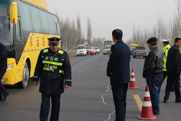 演练中拜城县运输公司拜城至阿克苏班线客车发往阿克苏行至米吉克乡政府路段出现中途抛锚,司乘人员立即第一时间打电话求援单位值班人员。接到求援电话,值班人员立即向交通局办公室报告。经应急救援小组组长指示,拜城县汽车运输公司根据具体情况,立即启动本单位应急预案。
