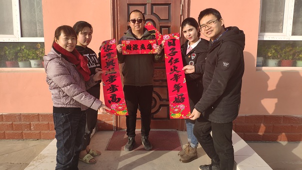 在走访慰问已脱贫困难群众茹先古丽·艾尔西家中,工作队员和村干部正忙着帮老人贴对联,询问老人生活状况,祝福老人新年吉祥如意。看着这含有深情祝福的对联,茹先古丽·艾尔西激动的说:“感谢你们心里一直惦记着我,今年帮我脱贫,平时对我关心关爱,我相信在党和政府及工作队的关怀和支持下,我的新生活一定会越过越好。”