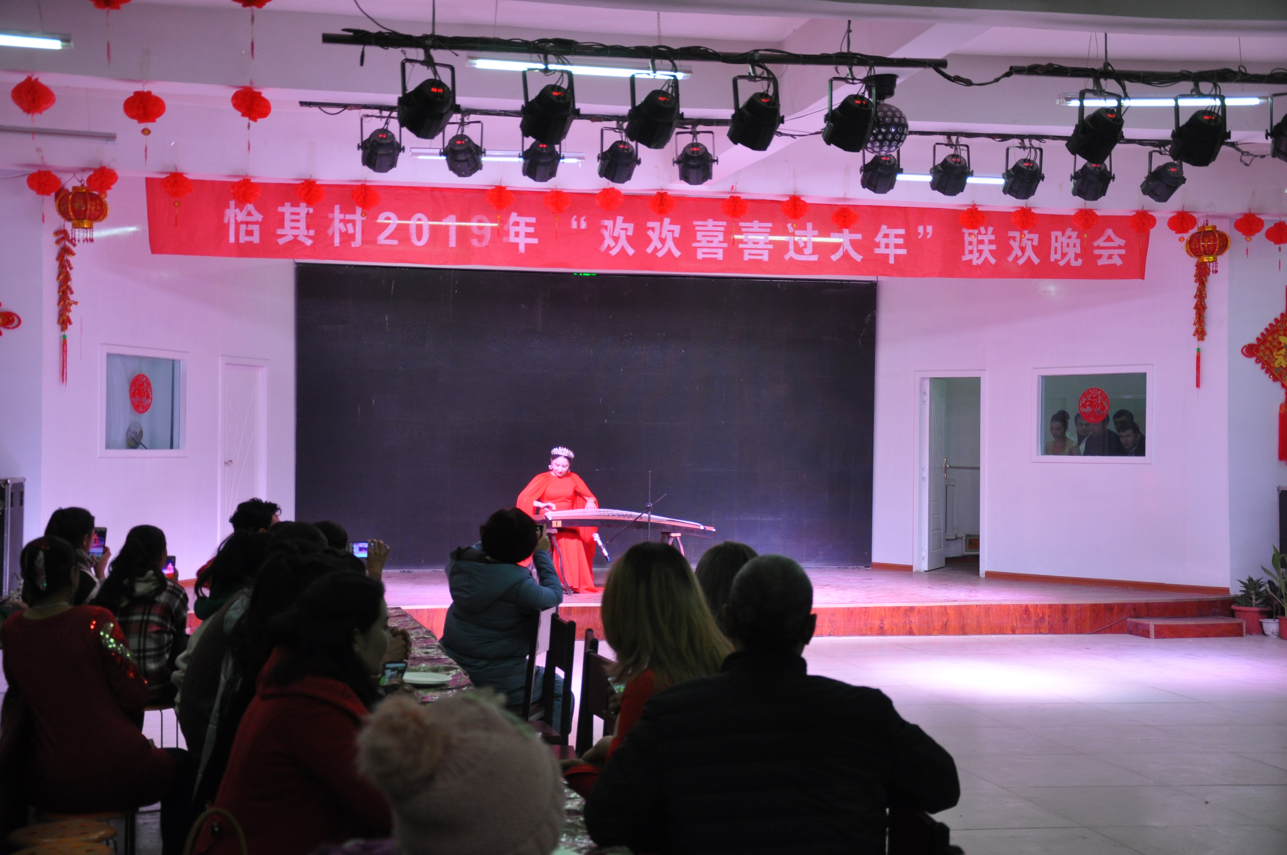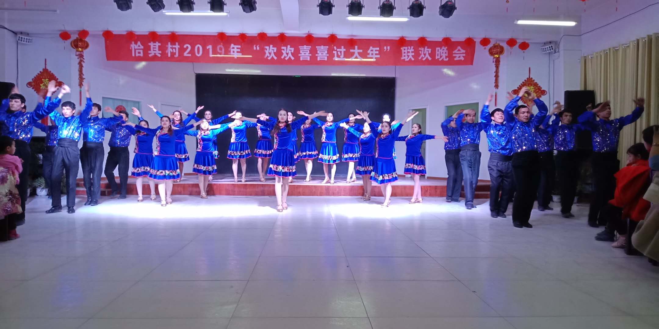 除夕晚上的恰其村文化活动中心,格外喜庆,一排排红灯笼高挂穹顶,大红的中国结装饰全场,年味十足。各族干部群众济济一堂,欢声笑语,共话新春。晚上8时许,由恰其村村民自己表演的春节晚会拉开帷幕。全场共有10个精彩的节目演出。集体舞蹈《祝福祖国》表达了基层群众对祖国的热爱和祝福;文旅厅系统下沉干部阿依吐拉·吾买尔带来的古筝独奏《女儿情》,展示了中华传统文化的魅力;男子集体舞《好日子》展示了恰其村干部群众奋力脱贫攻坚,追求新时代美好生活的美丽愿景;