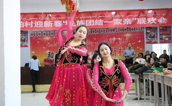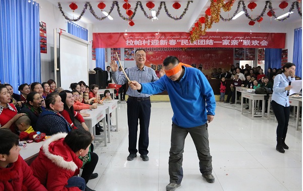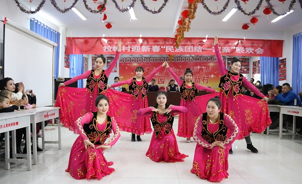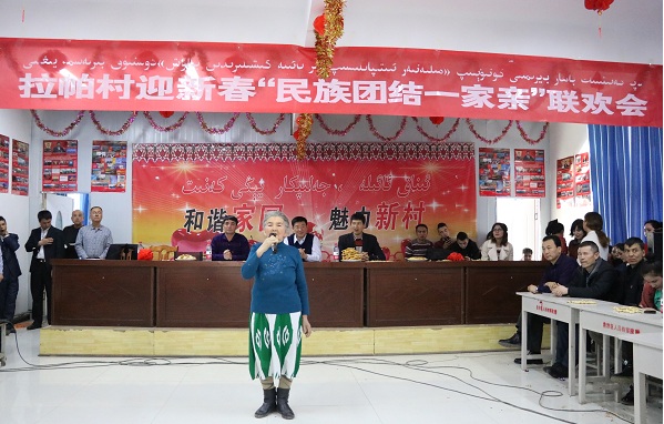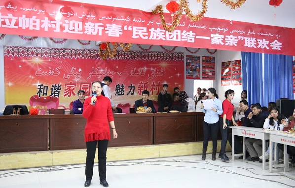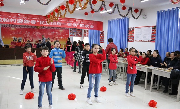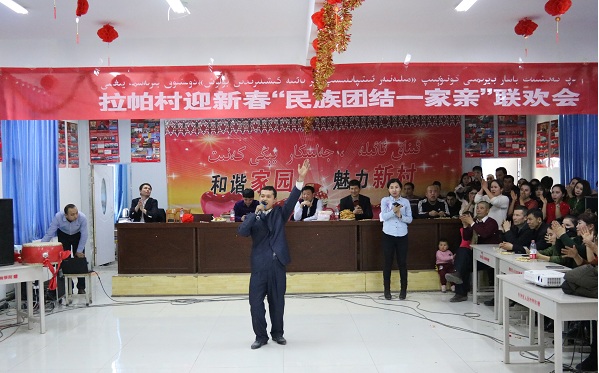 2月5日下午,自治区人民检察院驻拜城县赛里木镇拉帕村工作队组织全体村民举办的2019年迎新春“民族团结一家亲”联欢会在拉帕村文化活动中心举行。来自自治区人民检察院、库尔勒铁路运输检察院、塔里木检察院的二十多名结亲干部和拉帕村全体村民们兴高采烈地汇集在一起参加此次联欢会。舞蹈、小品、独唱、戏曲演唱、击鼓传花、盲人摸象……一个个丰富精彩的节目和游戏吸引着每个人的眼球,把在场的每个人带入了欢乐的海洋。这场精心准备的春节联欢会给前来参加“民族团结一家亲”的结亲干部和所有的村民们带来了一场精彩纷呈的视听盛宴。