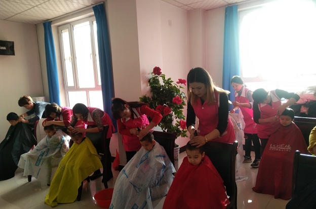 2月4日,在中国传统的新春佳节到来之际,拜城县妇联组织17名巾帼志愿者走进社会福利院开展“爱心理发”志愿服务活动,为福利院儿童和老人免费理发,让他们以崭新的形象过一个快乐幸福的节日。