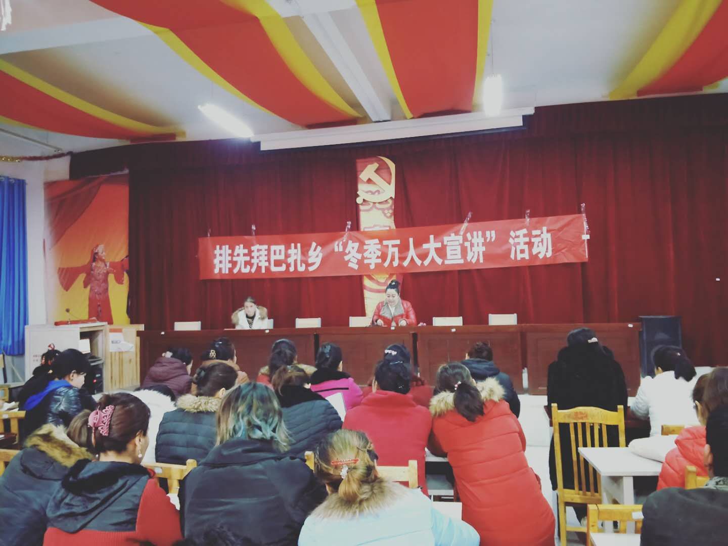 清风网讯(排先拜巴扎乡人民政府阿孜古丽·艾买提 黄素平)为有效提升妇女地位,树立和宣传“妇女能顶半边天”的思想观念,近日,排先拜巴扎乡各村持续深入开展“冬季万人大宣讲”活动,村干部、驻村工作队员,广大妇女群众等积极参与。