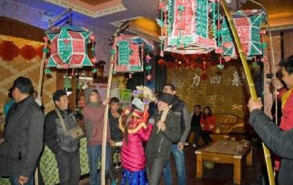 每年新春佳节到来之时,民间临时组织起来的耍灯班子就敲锣打鼓,走家串户,进行以娱乐为目的的拜年、玩耍、贺春。耍灯贴近生活、使人开心,既为新春带来了喜庆又为生活增添了色彩。因此,花灯能长期吸引众多人的参与,也得以长期的流传。