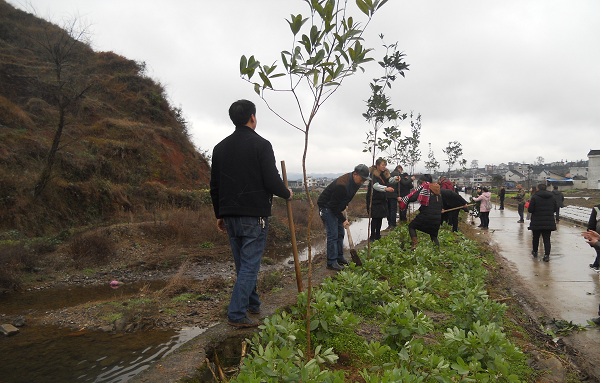 此项植树造林活动,在草芦坪村委会操场集中,活动由林业站站长组织。集中会上,镇党委书记向全体干部职工、第一书记、包村干部、村干、护林员介绍了红梅河的背景和历史。他说,红梅河是我们旧州镇的五大河流之一,和我们生活息息相关,所以,我们要爱护它、保护它。同时,镇党委书记还向干部职工、第一书记、包村干部、村干、护林员等介绍了人与自然、人与山河、人与森林的重要性,给干部职工们提高了精气神,鼓足了干劲。劳动中,他们不怕张、不怕累,面对寒风刺骨的阴雨天气,经过三个多小时的共同努力,400多棵桂花树在红梅河河岸安营扎寨。