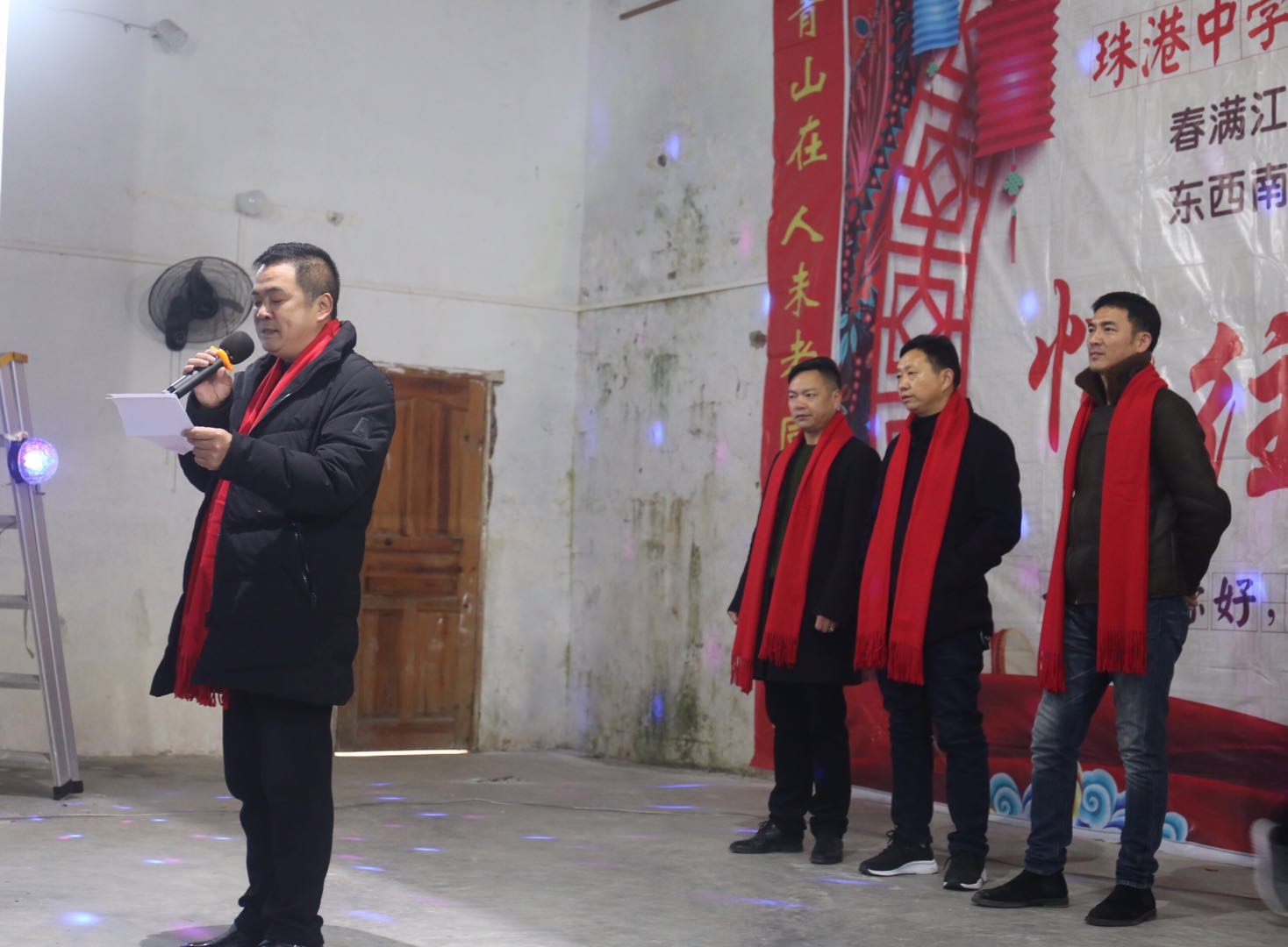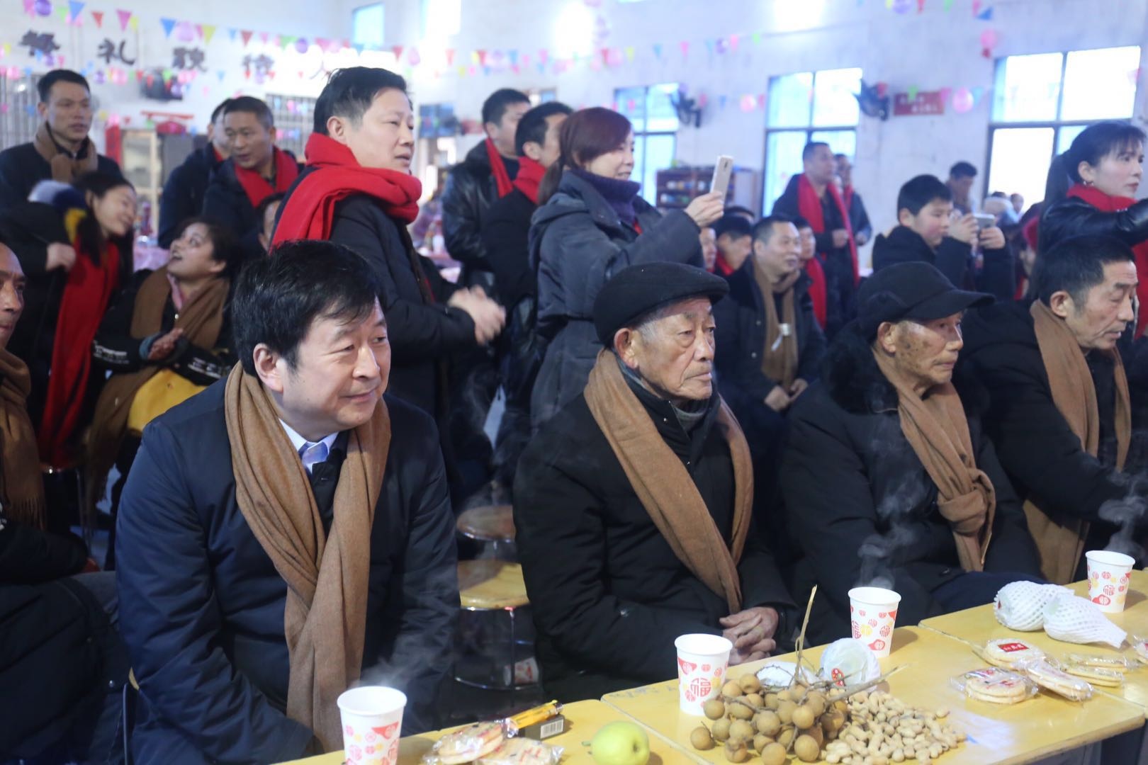 在合唱《同一首歌》前,会务组的许完兵、许寒龙、刘刚、施霞凤、许德龙、许金雄、许光辉、许红武、许佳和许素文都走上主席台进行了简短的自我介绍,并一起给二十多位敬爱的老师送温情——赠披围巾和红包。许完兵、许寒龙、相思中学校长吴宇新、北京十一学校校长许鹏飞和岳阳楼区纪委领导许丹分别致词。吴宇新校长对回归的校友们表示了热烈的欢迎和诚挚的感谢,并热忱的希望校友们常“回家”看看,一起谱写相思中学腾飞的崭新篇章。