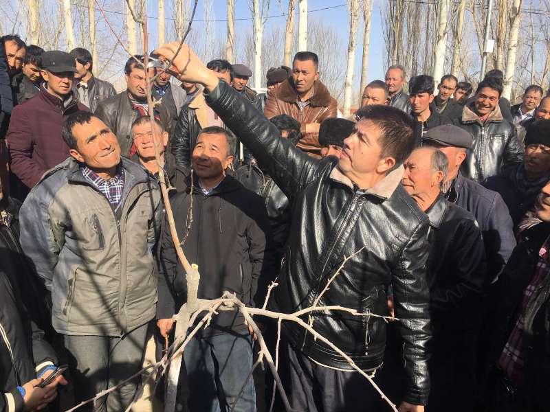 贫困户艾合买提·肉孜高兴的说:通过技术人员的讲解和现场示范,我掌握了林果业基础的实用技术,回家后我会对自家种植的苹果树进行修剪,按照技术要求进行病虫害防治,争取今年果树有个高产量,增加收入。
