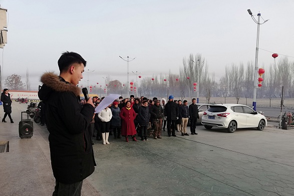 清风网讯(沙雅县委农村工作办公室 莫苗苗)2月11日,沙雅县委农村工作办公室驻沙雅县沙雅镇幸福社区访惠聚工作队组织24名返乡大学生参加了周一升国旗仪式,同时3名返乡大学生邓莉、姚卫超、木拉地里·乃买提进行了“发声亮剑”活动。