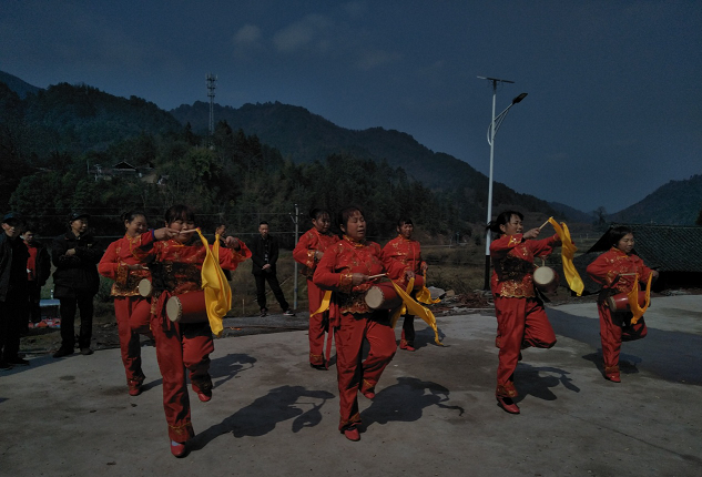 怀化凉亭坳乡贺家田村利溪组的腰鼓代表队前来助兴表演