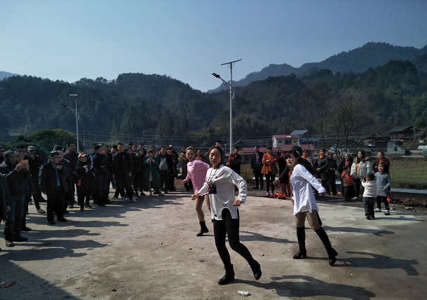 村里的美女也不甘示弱即兴表演