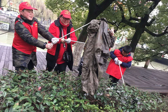 志愿者们身着红马甲,手握长柄钳,携带垃圾袋,高举爱心旗,“兵”分三路在余姚市阳明西路、南北滨江路和念慈桥等主流路段捡拾垃圾、清理死角,形成三道亮丽风景线,更为市容市貌增添了新的亮点。路过看到的行人频频为义工们翘指点赞。