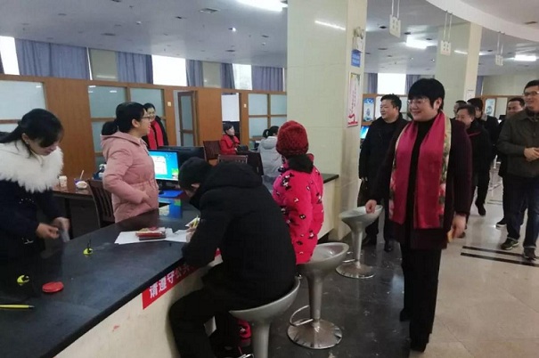 (在婚姻登记中心看望工作人员并为办理结婚登记的新人送上衷心的祝福)