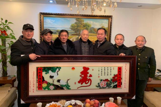 “我们也不能来给您祝寿啊?我们来的8个人都是您的亲人哩:理事许晓波(许迎九)是您的叔辈,理事长许成华和我许杰是您的弟弟,副理事长许定贵、许章志和理事许黑林是您的侄子,许平雄和许国满是您的侄孙。”