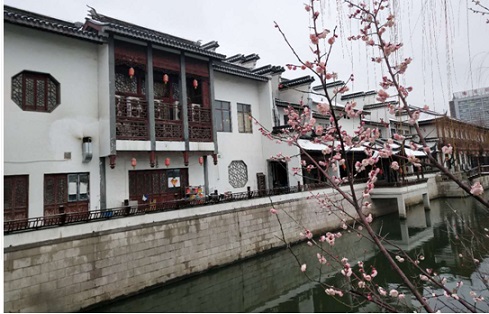 何逊在《咏早梅》一诗中写道:应知早飘落,故逐上春来。提起梅花,从古到今,涌现出众多歌赞梅花的诗句,墙角数枝梅,凌寒独自开。遥知不是雪,为有暗香来。赏梅,除了到梅园还可以到梅村来。现在正是梅花即将盛开的时候。泰伯庙内外种满了梅花,前面的梅里中路上、旁边的梅林里,甚至泰伯庙里都是即将盛开的梅花。有绿萼梅、红梅、杏梅等品种,周围粉墙瓦黛,小桥流水,漫步在梅花丛中,宛如进入了一片世外桃源。