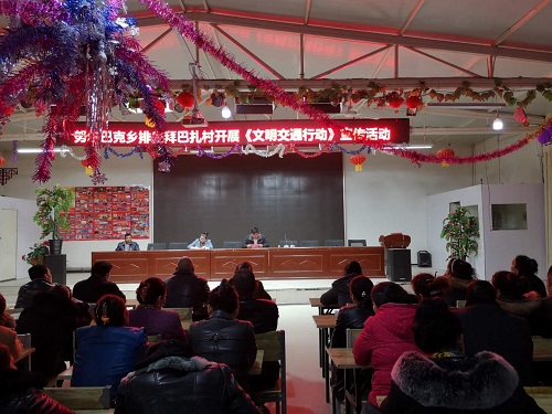 清风网讯(太平人寿新疆分公司驻沙雅县努尔巴克乡排先拜巴扎村工作队 库尔班·阿扎提)为切实增强职工交通法治、安全和文明意识,培养村干部和村民安全出行的良好习惯,2月13日下午,排先拜巴扎村开展了《文明交通 绿色出行》宣传教育活动。