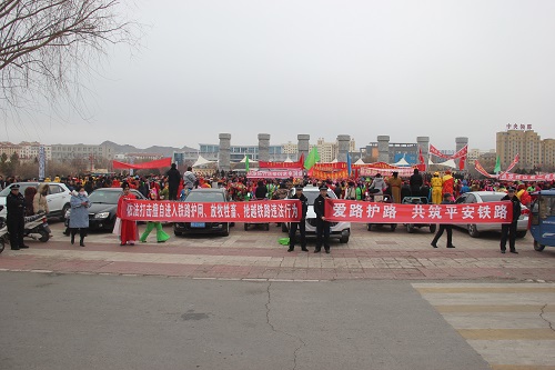 清风网讯(通讯员 黄晓宇)为切实提升线路治安管控水平, 进一步强化管内沿线居民爱路护路意识,确保铁路运输生产安全,2019年2月19日,锡林浩特铁路公安处查布嘎车站派出所利用当地政府举办元宵节秧歌大赛的有利时机,深入管内沿线街道、广场联合秧歌队开展爱路护路宣传教育。
