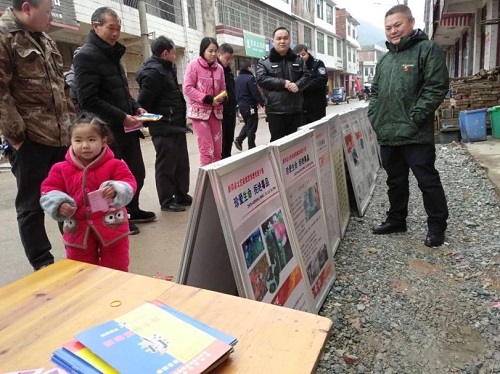 太芝庙镇武装政法委员汪海文(右一)向群众讲解禁毒知识
