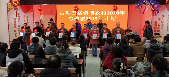 2019年2月19日,古勒巴格镇博孜村召开2018年工作总结表彰大会,对2018年工作进行了全面系统的回顾总结,对2019年工作进行了谋划部署。表彰先进、鞭策后进,表彰了2018年先进工作者、优秀党员、脱贫攻坚等各领域先进模范。为开展2019年工作奠定了良好基础。