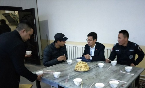 “元宵节快乐呀!”县安监局局长辛毅拉着亲戚艾斯卡尔·莫明的手,向亲戚送去了节日的祝福,并送去了面粉、水果等慰问品。辛毅认真的询问家中生活情况、孩子学习成长情况、困难诉求等,向他们讲解元宵节的来历、风俗习惯、意义等,家里欢声笑语,其乐融融。艾斯卡尔·莫明心里暖暖的,他激动地说道:“这是我们中华民族的传统节日,辛局长来看望我们,给我们送来了党和政府的关心关怀,我们全家心里别提多高兴了”。