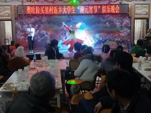 晚上元宵节联谊活动现场,农牧民在浓厚的节日气氛里脸上洋溢着欢快的笑容,盼望着在新的一年里生活富足,家庭幸福。