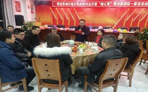 活动伊始,下沉带队领导、调研员、副局长于遴志同志向活动致辞:“ 我们告别了祥和稳定的一年,满怀希望的迎来了2019年,我们在各级党委的正确领导下,在局党组的全力支持下,党的基层组织建设工作全面展开,村干部国语水平明显提升,脱贫攻坚取得了阶段性胜利,村集体经济收入明显增加。我们将继续围绕在以习近平同志为核心的党中央周围,统一思想,凝心聚力,为全面建成小康社会的征程中奋勇前进”随后,包村领导阿布拉·尕孜向大家送上节日的祝福,分享喜悦的心情。