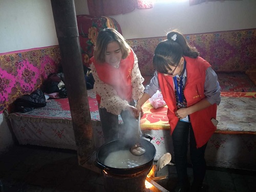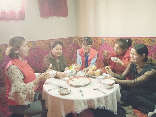 在社区干部的带领下,来到困难群众买然木·沙依明的家中,给他们送上节日的祝福,仔细地询问了他们最近的身体情况,并将寄托浓浓"爱心"的汤圆送到他们的手上。老人们接过“爱心”汤圆都激动不已,纷纷表示:“感谢党和政府对我的关心照顾,这是我节日收到的最好的礼物”。