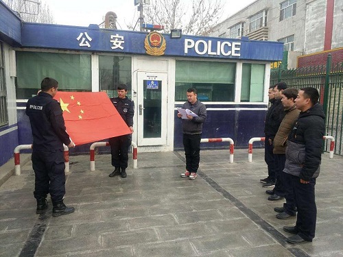 清风网讯(拜城县公安局政治处 叶付友)2018年已成为历史,2019年已经到来,新的一年意味着新的起点,为做好2019年各项工作,进一步提高民、辅警集体荣誉感、责任使命感和危机紧迫感,时刻不忘人民警察身负的神圣职责和光荣使命,巩固坚定民、辅警政治理想和信念。2月18日,拜城县公安局特巡警大队便衣中队组织开展“重温入警誓词”活动,强化宗旨观念和理想信念。