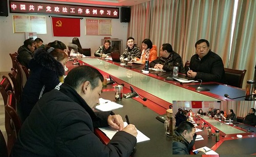 牛局长指出:《条例》明确规定了党领导政法工作系列重大问题,目的是坚持和加强党对政法工作的领导、做好新时代党的政法工作,阐明了政法工作的性质、指导思想、主要任务和原则等重大问题,明确了政法工作的领导主体及职责,规定了党中央对政法工作实施绝对领导等重大职权,以及地方党委、党委政法委员会、政法单位党组(党委)的主体责任等,同时规定了政法工作重大事项请示报告、决策和执行、监督和责任等制度。他要求:司法行政系统党员干部要认真学习贯彻《条例》,将《条例》精神贯彻到政治、思想、组织等各方面,工作落实到决策、执行、监督环节,确保在政治立场、政治方向、政治原则、政治道路上同以习近平同志为核心的党中央保持高度一致。一是要坚持党对司法行政工作的绝对领导,要充分认识制定和实施《条例》的重大意义、本质要求,树牢“四个意识”,坚定“四个自信”,做到“两个维护”,确保党的路线、方针、政策在司法行政工作中得到不折不扣的落实。二是要严格执行《条例》的规定,在林区党委政法委的领导、支持、监督下依法行使职责,落实重大事项报告制度,确保司法行政工作的正确政治方向。三是要打造能力素质过硬的司法行政队伍,认清司法行政工作在法治神农架建设中的地位和作用,切实增强使命感、责任感、荣誉感,利用党组会、中心组学习、干警培训、支部“三会一课”、主题党日活动、领导干部讲党课等形式,深入学习领会《政法工作条例》精神实质,着力破解制约司法行政队伍建设的体制性、机制性和保障性问题,扩大司法行政工作影响力,展现司法行政新形象。四是要发挥司法行政职能作用,强化《条例》学习宣传,坚持先学一步,学深悟透,深学一层,入脑入心。充分利用新媒体、电子显示屏、宣传栏、微信、微博、报纸专版、QQ群等方式,加强对《条例》内容的宣传解读,在全区迅速掀起学习条例的热潮,形成全区人人参与、人人关心的浓厚社会氛围。