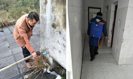据悉,为营造一个干净、安全、舒心的校园环境,自2月20至21日,该校校长带领全体老师冒着大雨打扫校园、整理桌椅、清扫门窗。年轻的漆老师背着喷雾器给学校教室、食堂、寝室、储藏间、教室住房及下水道等进行彻底消毒。“为了给学生一个安全舒服的学习生活环境,我们这样做是值得的。”老师们纷纷表示,为了学生再苦再累也值得。