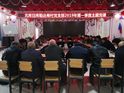 清风网讯(沙雅县应急管理局驻古勒巴格镇尤库日库勒达希村工作队 白光圣)2月22日,尤库日库勒达希村党支部开展第一季度上党课活动,驻村干部党员、农牧民党员、群众代表35人参加了活动。