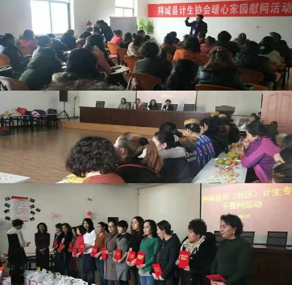 联谊活动以快乐陪伴为主题,安排了丰富的活动内容。为关爱失独家庭的身体健康,专门邀请了拜城县红十字会的医生给大家上了一堂介绍常见老年病的健康课,增强健康防范知识;还设置了拜城镇舞蹈团带来的集体舞、唱歌还有各种的游戏,体会不一样的心情;他们感受着党和政府对失独家庭的关怀。活动结束后,拜城镇各社区、村的优秀16名计生专干发放了慰问品。