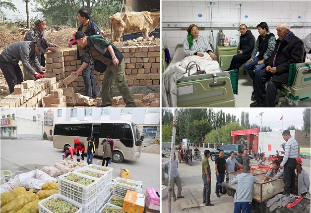 清风网讯 (新疆地矿局第八地质大队 王文胜)自开展民族团结一家亲活动以来,新疆地矿局第八地质大队28名结亲干部定期到拜城县托克逊乡阔纳协海尔村,开展民族团结一家亲及民族团结联谊活动,在结亲活动中,结亲干部们带着真感情,撸起袖子、俯下身子,拿出“拼命三郎”的劲头,通过走访、调研,了解群众在生产生活中遇到的困难和问题,到有困难、缺劳力、孤寡老人、体弱病残群众的家庭中帮助收割小麦、玉米、土豆、播种小麦、修建房屋、圈舍、改善人居环境,在亲戚家中帮着喂羊、喂牛、打扫卫生、春耕生产、清理羊圈、拉运肥料、拆除残墙等,他们把亲戚家里的事当成自己家的事,认真对待,一丝不苟,在劳动中体验生活的快乐。帮助村民销售蔬菜、核桃等,用真心、真情帮助群众排忧解难,一幅幅生动鲜活的民族团结画面,不断把民族团结活动引向深入。