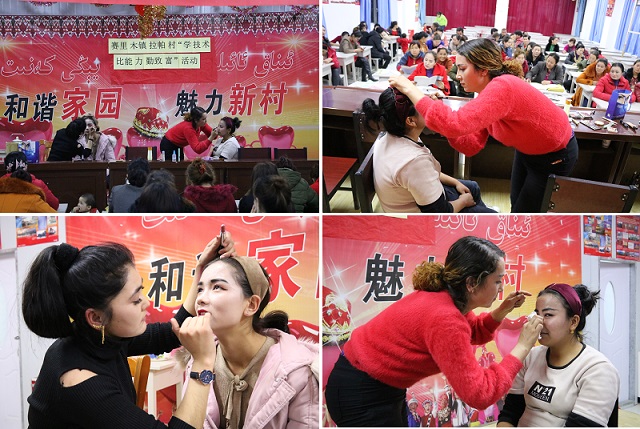 清风网讯 (通讯员:自治区人民检察院 罗世山)2月26日,一堂别开生面的乡村妇女化妆课堂在拜城县赛里木镇拉帕村开始了。来自该村的两名化妆功底较深的化妆老师一边现场示范一边讲解化妆技巧和方法。