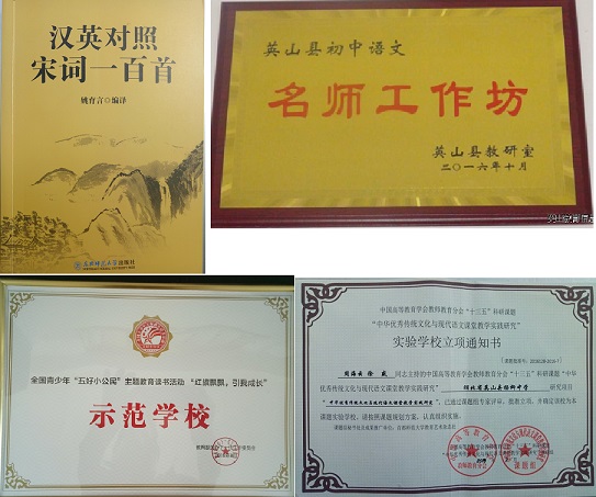 观念决定行为,有什么样的教育观念,就会有什么样的教育行为。徐盛校长一方面以身作则,身体力行,一方面通过“引进来,走出去”,激发广大教师教科研的危机意识、忧患意识、责任意识和竞争意识。近年来,该校聚焦学科核心素养,通过创新校本研修途径,深入推进教科研工作, 一大批青年教师、省招教师逐步成长为“学习型”、“研究型”教师,成为学校的教育教学骨干力量;一大批“沉睡”多年的中老年教师被唤醒,老当益壮、不甘示弱,用自己丰富的教育教学经验融入新的课程理念和现代教育信息技术,重出江湖,华山论剑,谱写了校本研修和教科研的五彩华章,该校先后荣获英山县“初级中学示范学校”、“师资水平先进单位”、“教育质量先进学校”、“学科竞赛先进单位”,黄冈市“教科研工作先进单位”、 “心理健康教育先进单位”、 “艺术教育试点学校”,湖北省“素质教育示范学校”、“中小学校园文化建设百强校” 、“信息技术创新与实践活动先进单位”、“优秀文学社团”,全国青少年“五好小公民”主题教育活动“示范学校”等荣誉称号,形成了教师自觉践行终身教育理念、学生全面发展、学校可持续发展的良性循环局面,受到了社会各界好评。