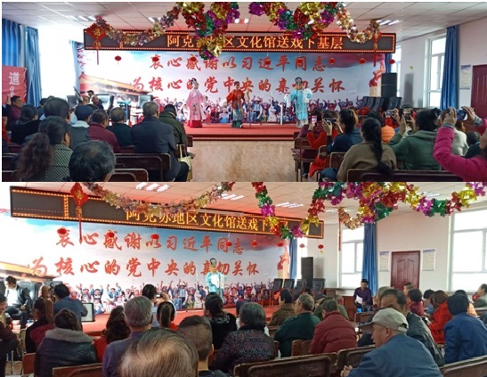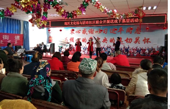 现在虽说是2月下旬,但是寒风瑟瑟仍抵挡不住现场近百名观众的热情,演出现场中大家的鼓掌声和喝彩声此起彼伏。这次阿克苏地区文化馆“送戏下乡”演出队与阿克苏市执法局驻新城街道团结社区工作队正在开展的“我们的中国梦—文化进万家”活动,紧扣新时代文明实践发展主题,旨在弘扬优秀传统文化、传承文明良好家风,丰富广大人民群众的精神文化生活,提升人民幸福感。