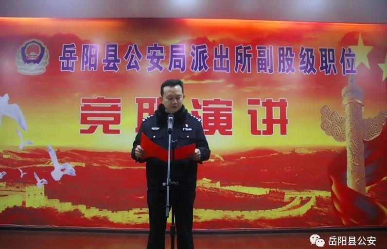 清风网岳阳讯(陈斯 许萍)为进一步强化激励机制,拓宽选人用人渠道,为优秀民警脱颖而出搭建良好平台,近日,岳阳县公安局在机关大楼四楼大会议室举行派出所副股级职位竞职演讲活动。副县长兼公安局党委书记、局长傅学文,局党委副书记、政委陈遇春出席活动,全体局党委班子成员担任活动评委,室所队长参加活动,来自局属各单位的29名青年民警参加竞职演讲。