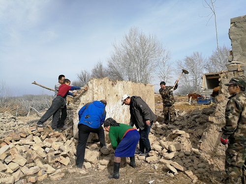 听说他家庭院改造建羊圈享受政府补贴,需要把不安全的土块墙拆除,十几名结亲干部立即前来帮忙,大家不怕脏不怕累,仅用1天就把残墙断臂拆除清理干净。