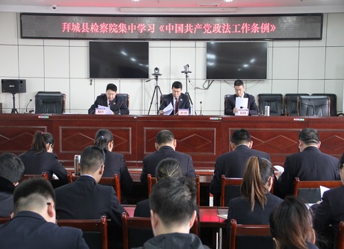 清风网讯(拜城县人民检察院政工科 杨洁)2月27日下午,拜城县人民检察院召开全体干部职工大会,集中学习贯彻《中国共产党政法工作条例》精神 。