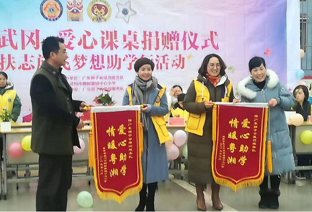 “情系武冈、牵手粤湘!捐资助学,大爱无疆!”稠树塘镇中心小学校长做答谢发言时对广东狮子会进行了如此评价。