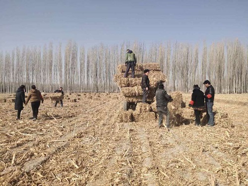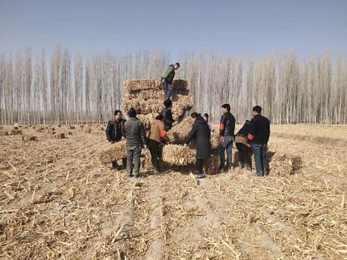 下午在托合提·艾孜则的平静的地头因为干部们的到来而变得热闹起来。走进田间地头,干部们迅速进入角色,投入了劳动当中,通过一下午的劳动,托合提·艾孜则田间的大堆青储饲料搬运拖走。