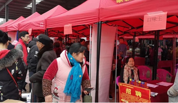 各展位上的职位详情、职位要求、薪资水平一目了然,公开透明。一边是各大企业招聘人员发放传单,纷纷亮出企业优势,一边是闻讯赶来的居民群众忙着查阅资料,填写履历,求职问职。招聘会现场就像乡镇集市一样热闹,每个招聘桌台前都挤满了人,或咨询,或填写简历。不管你学历高低,也不管你是否有一技之长,只要你健康、勤劳,都能有适合你的岗位。