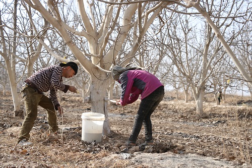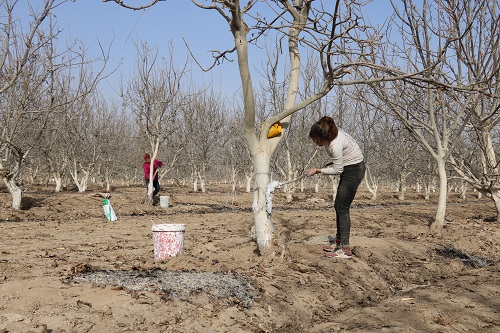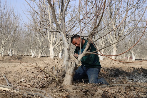 “今年的春耕已以开始,城里的亲戚来帮我家春耕工作做准备,帮助我清理核桃林、刷树干,一下子就解决了我家中缺少劳动力的困难,我很高兴,感谢我的亲戚、工作队!”村民吐尔逊·斯拉木激动的说。