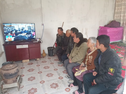 阿克苏拜城县大桥乡阔纳买里村村民得知全国人大二次会议开幕式在2019年3月5日播放,村民们早早做好准备以各种方式在观看全国人大二次会议开幕会盛况。