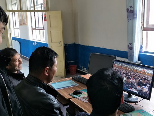 拜城县大桥乡阔纳买里村村民观看十三届全国人大二次会议开幕会议实况反响