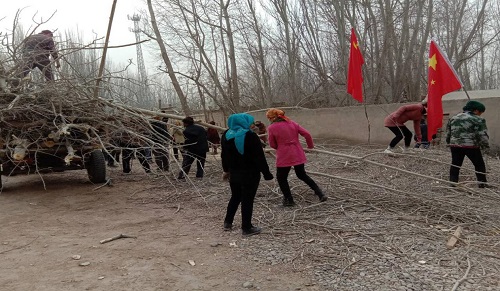志愿服务队来到老党员托乎提·塔西家时,工作队副队长第一个冲上前去打扫圈舍、清运垃圾,他说:“我们工作队就要不怕累、不怕脏的优良传统,发扬雷锋精神,积极做好服务基层、服务群众工作。”老党员托乎提·塔西激动的说:“感谢党和政府一直无微不至的关心照顾我们,我们一家人的心里充满感恩,以后我也要带头宣传民族团结,与村民们一起努力共同致富。